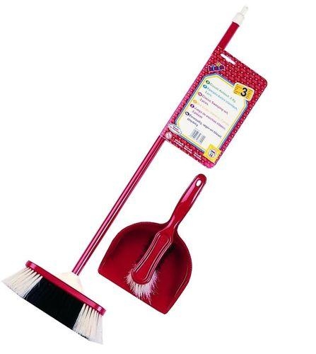 Zestaw do sprzątania klasyczny autorskiej marki Klein - Pure Fresh składa się z miotły na długim kiju, zmiotki i szufelki. Miotła ma 61,5 cm wysokości i 18 cm szerokości. Czarno-białe włosie miotły i zmiotki jest na tyle gęste i trwałe, że spokojnie nadaje się do robienia prawdziwych porządków. Zarówno miotła jak i zmiotka przydaje się świetnie do sprzątania drobnych klocków, czy niewielkich domowych porządków w dziecięcym pokoju. Od prawdziwych akcesoriów odróżnia je tylko wielkość dostosowana dla dzieci. Bawiąc się w sprzątanie domu, dzieci zapoznają się z dorosłymi zadaniami, ćwiczą motorykę i rozwijają swoją wyobraźnię.
