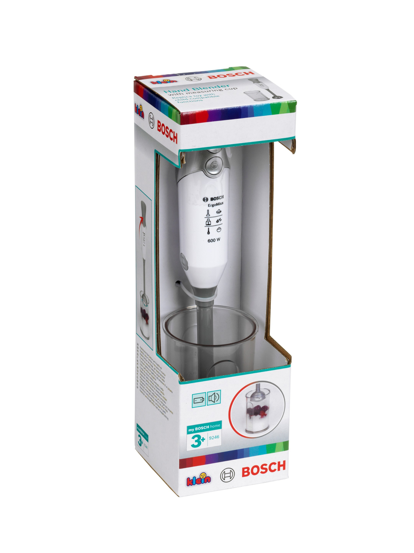Blender Klein powstał na licencji Bosch, dlatego też są wierną kopią prawdziwego urządzenia produkowanego przez tę firmę. Firma Klein od lat produkuje odpowiedniki prawdziwych narzędzi i akcesoriów AGD, przeznaczone do zabawy dla najmłodszych. Zestaw składa się z ręcznego blendera oraz przezroczystego pojemnika z miarką (250 ml). Blender jest kopią urządzenia marki Bosch i jak cała seria urządzeń AGD jest w kolorze srebrnym. Końcówka blendera obraca się po naciśnięciu guzika, a jego nasadkę mieszającą można zdjąć, co nadaje zabawie jeszcze większego realizmu. Ważną zaletą zabawki jest nie tylko jej pełna funkcjonalność, ale również gwarancja bezpieczeństwa, gdyż wszystkie elementy zostały wykonane z plastiku. Materiały, są najwyższej jakości, a także bezpieczne dla dziecka. Zabawka pozwoli każdemu dziecku na naśladowanie rodziców w sposób bezpieczny i pełen dobrej zabawy. Wielkość wszystkich elementów i akcesoriów zestawu jest dopasowana do potrzeb i rączek dziecka. Zabawka z pewnością będzie również świetnym uzupełnieniem pozostałych zestawów kuchennych firmy Klein.