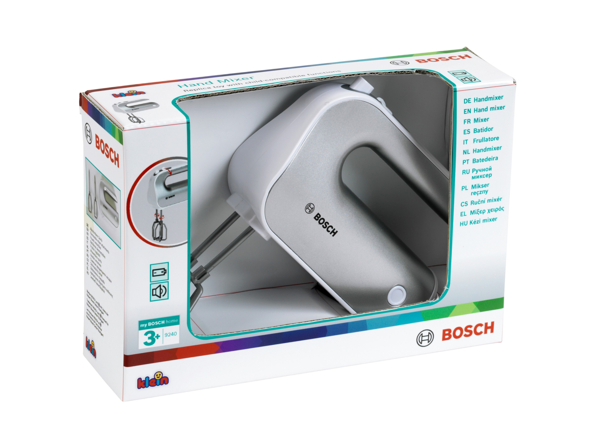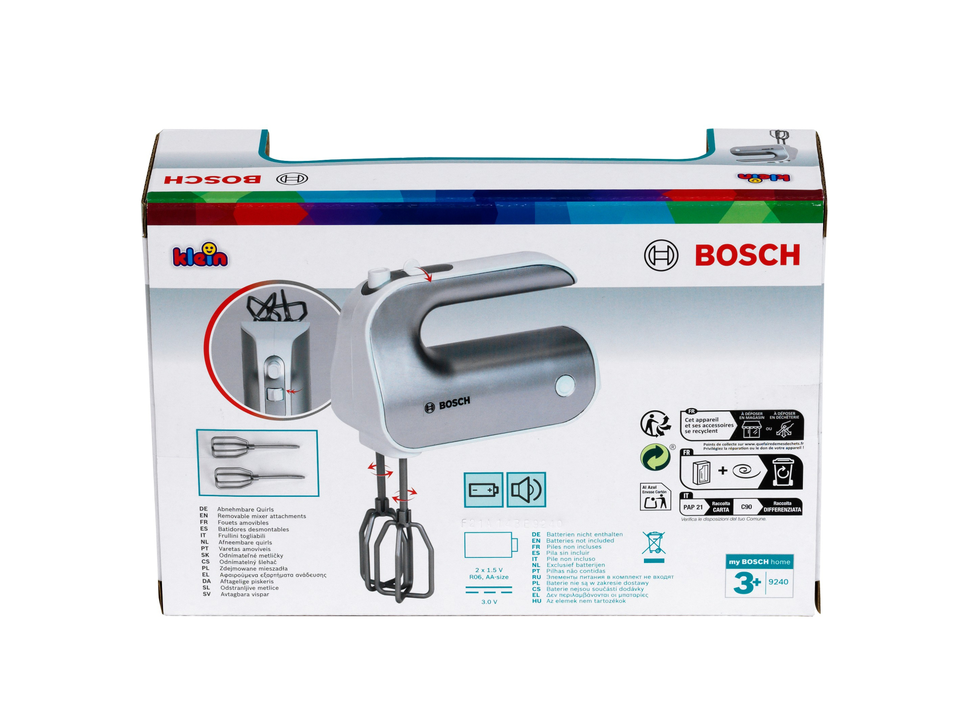 Mikser Klein powstał na licencji Bosch, dlatego też są wierną kopią prawdziwego urządzenia produkowanego przez tę firmę. Firma Klein od lat produkuje odpowiedniki prawdziwych narzędzi i akcesoriów AGD, przeznaczone do zabawy dla najmłodszych. Mikser jest w kolorze srebrnym. Zabawka jak prawdziwa, ma obracane mieszadła, które włącza się za pomocą przycisku. Do właściwego funkcjonowania zabawki niezbędne jest użycie baterii, które nie są częścią zestawu. Dodatkowo mikser posiada ruchomy przełącznik będący imitacją regulacji prędkości pracy miksera. Ponadto mieszadła po skończonej zabawie można zdemontować i jak prawdziwe umyć. Ważną zaletą zabawki jest nie tylko jej pełna funkcjonalność, ale również gwarancja bezpieczeństwa, gdyż wszystkie elementy zostały wykonane z plastiku. Materiały, są najwyższej jakości, a także bezpieczne dla dziecka. Zabawka pozwoli każdemu dziecku na naśladowanie rodziców w sposób bezpieczny i pełen dobrej zabawy. Wielkość wszystkich elementów i akcesoriów zestawu jest dopasowana do potrzeb i rączek dziecka. Zabawka z pewnością będzie również świetnym uzupełnieniem pozostałych zestawów kuchennych firmy Klein.