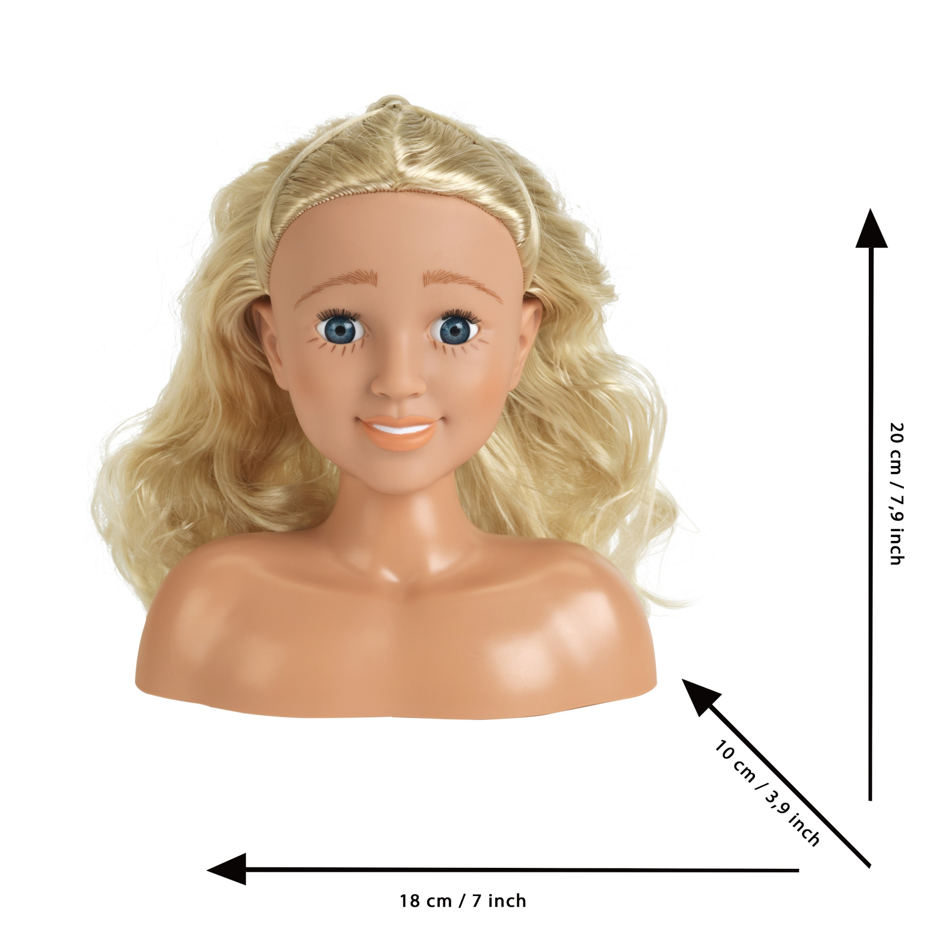 Głowa o wysokości 20 cm z długimi włosami