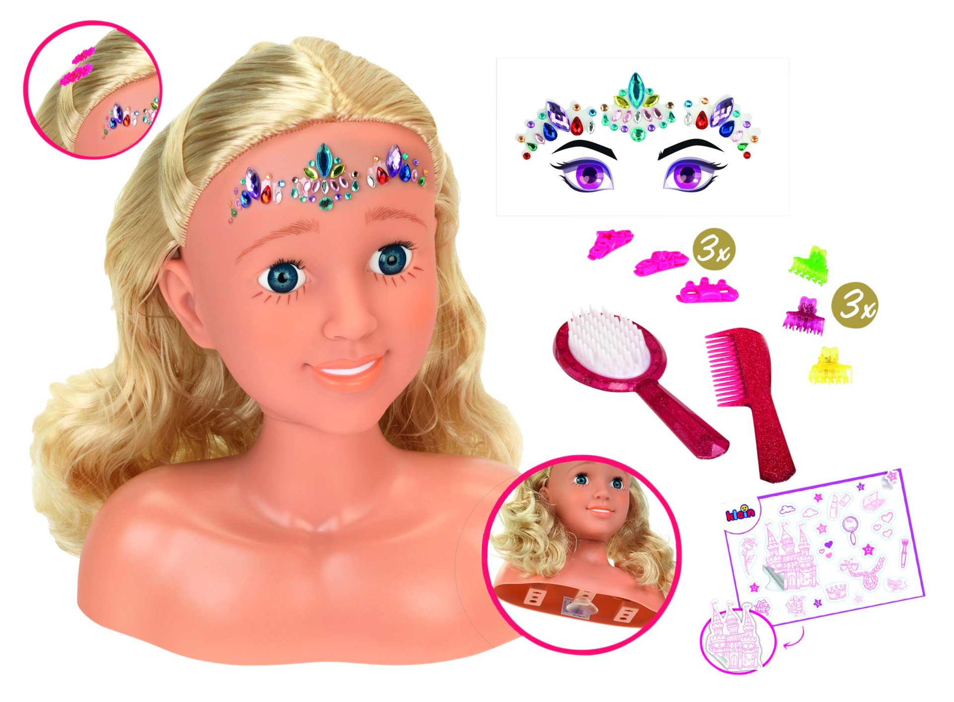 Nie tylko dla fanek księżniczek! Fanki fryzur i makijażu również pokochają tę śliczną głowę i wszystko, co się z nią wiąże. W końcu nie tylko wszystkie akcesoria wyglądają jak w prawdziwym salonie piękności, ale można je również wykorzystać do stworzenia praktycznie każdego makijażu. Oprócz kreatywności i sprawności motorycznej, ta zabawka ćwiczy również pewność siebie i poczucie własnego stylu.Z miłością zaprojektowane akcesoria obejmują trzy spinki do włosów, grzebień, szczotkę, arkusz naklejek oraz kosmetyczne serce z kosmetykami testowanymi dermatologicznie.