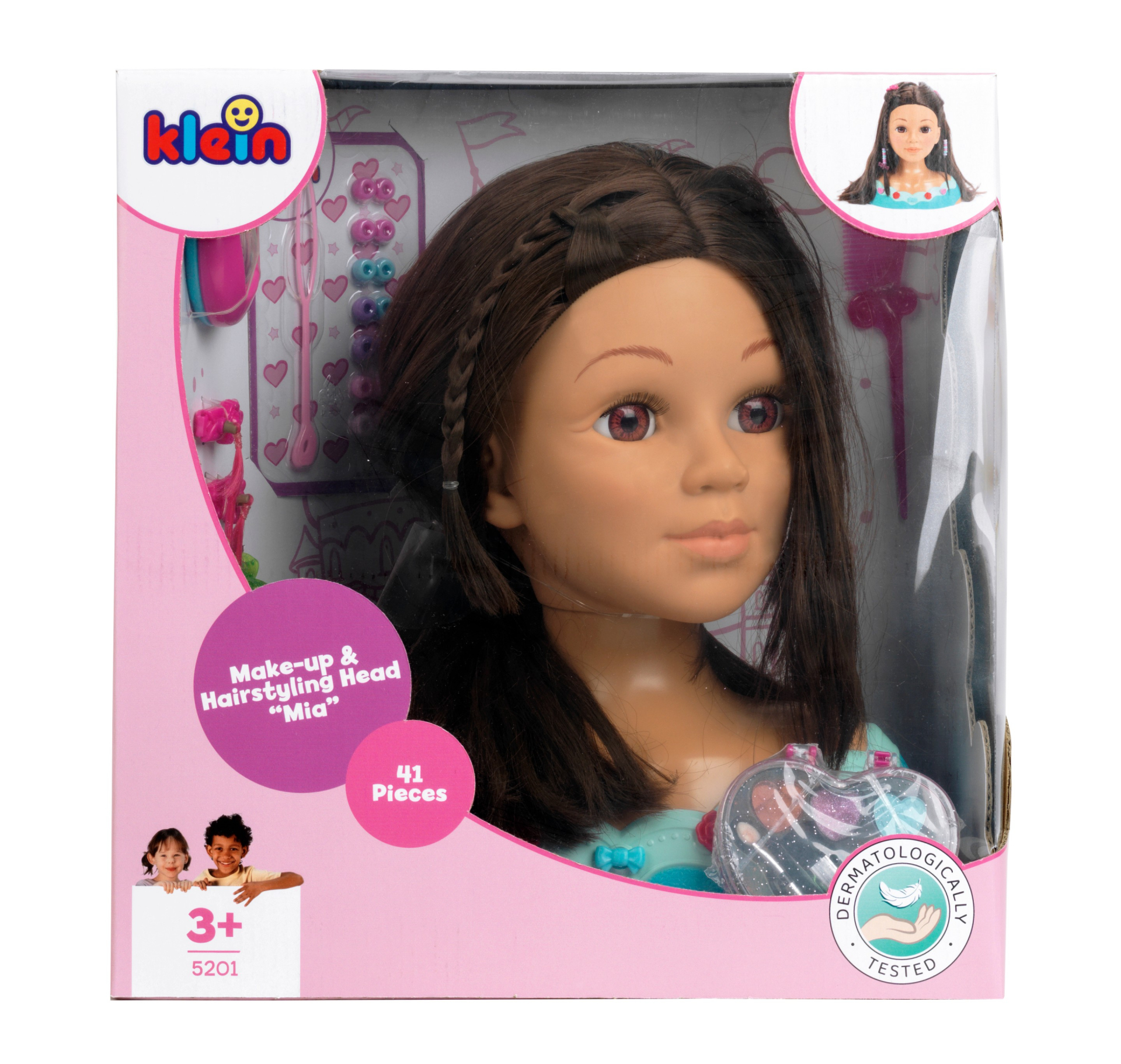 Uwaga, królowie stylizacji i królowe piękności – uwolnijcie swoją kreatywność! Ta śliczna głowa oferuje nieograniczone możliwości zabawy z włosami i makijażem: Sięgające ramion blond włosy tej ślicznej głowy fryzjerskiej można myć, czesać, szczotkować i ozdabiać spinkami, koralikami i kolorowymi pasemkami według uznania. Przyjazna buzia czeka tylko na ozdobienie błyszczykiem, cieniem do powiek i różem. Wszystko, czego potrzebują mali styliści, znajduje się w uroczym pudełku w kształcie serca. Theo Klein poddał kosmetyki dla dzieci dokładnej kontroli dermatologicznej, dzięki czemu można je stosować nie tylko na wytrzymałej, zmywalnej lalce, ale także na delikatnej skórze dzieci.