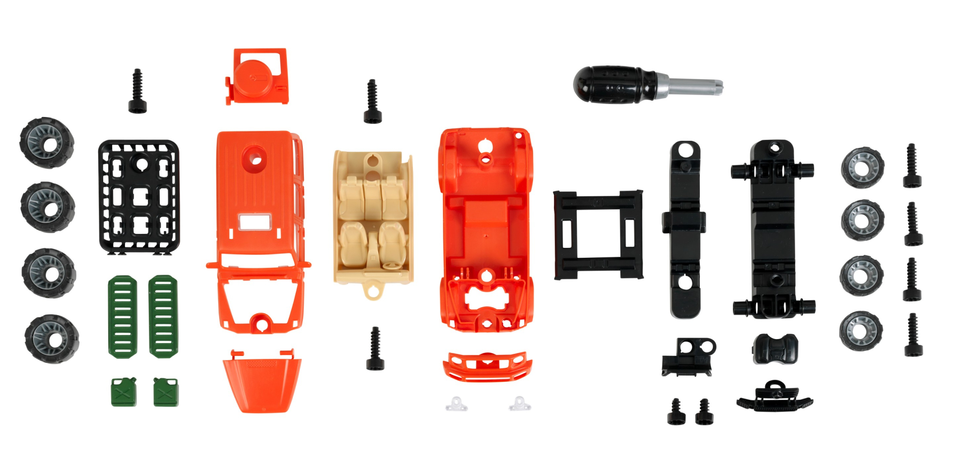 Z wkrętakiem Mercedes-Benz Klasy G każde dziecko staje się majsterkowiczem i ekspertem od technologii! Samochód AMG Klasy G i pojazd safari można łatwo zmontować i zdemontować dzięki praktycznemu systemowi śrub. Pozwala to na tworzenie nowych samochodów lub ekscytujące naprawy niczym prawdziwy mechanik. Szczegółowa konstrukcja w stylu Mercedes-Benz dodaje odrobinę luksusu, a dzieci bawią się, rozwijając swoje umiejętności motoryczne i wiedzę techniczną. Zabawka jest w skali 1:24, z realistycznym designem i wieloma ruchomymi częściami do kreatywnej zabawy. Zabawka rozwija precyzję ruchów i zrozumienie techniczne. Wspiera koncentrację, kreatywność i koordynację wzrokowo-ruchową u dzieci podczas wkręcania i majsterkowania.